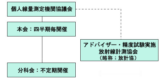 個人線量測定機関協議会の構成メンバーは、産業テック(株)、(株)千代田テクノル、長瀬ランダウア(株)、ポニー工業(株)の4社で、協力機関として個線協発足時から放計協にご参加いただき、中立的な立場から本会が公平な立場で技術基準統一などの審議検討を行っていることを確認していただいています。