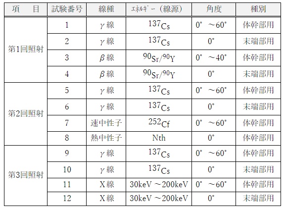 中性子・・・1cm線量当量 - 照射条件や試験回数は試験所(放射線計測協会)やメンバー各社の都合により変更になる場合もあります。